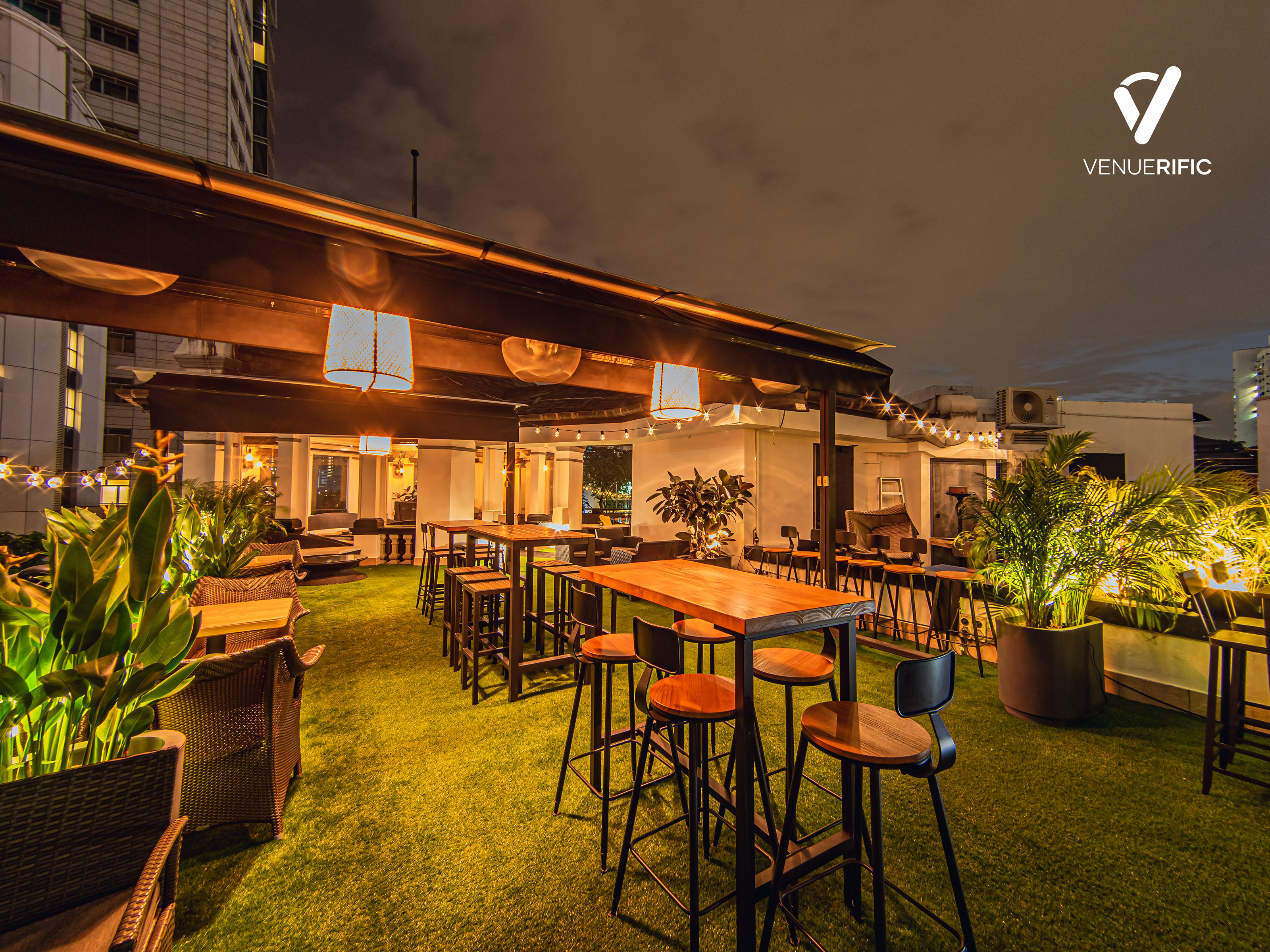 A rooftop bar with a lush garden, stunning deck and cozy indoor pavilion. Unwind against the backdrop of the city skyline and enjoy the panoramic views.